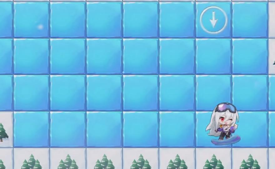 这个活动和很多活动都不一样,该活动从第一关开始难度就变得非常高。我们首先进入到关卡里面,一开始咱们往右边移动两格,之后便会往前开始滑行。在滑行没多久就会遇到下转标记,然后直接一路滑到最下面。接着我们便来到了最后一行。然后咱们直接往右边移动拿到两个瓶子,之后直接往上移动。接下来我们向着左边进行移动。走到快到底的时候,会出现一只肥嘟嘟的史莱姆,这里我们选择避开它。然后到了上面,然后我们往左移动一格,然后再往下移动一格。