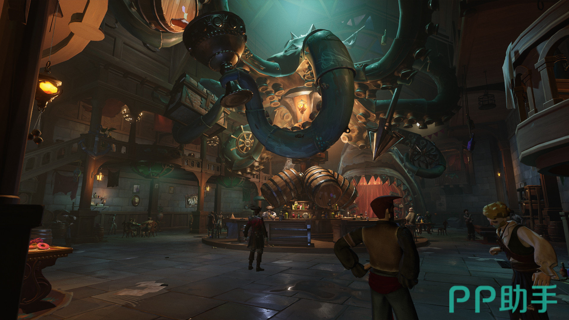 该风格贯穿全局场景设计:从锈蚀桅杆林立的港口到齿轮咬合运转的浮空岛,从提线木偶式建筑结构到光影投射下的皮影质感地形,地图本身即成为叙事载体,持续强化“被操控—抗争—觉醒”的主题张力。