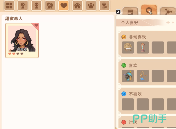 需特别注意避雷物品:骨头、动物皮毛及各类战斗武器均属阿蜜拉明确厌恶类别,赠送将直接降低好感度。每日互动窗口为早上7点至晚上10点,前往陶瓷店即可触发对话或玩耍选项,配合赠礼行为效果更佳。坚持每日聊天、打牌等轻度互动,亦能稳定积累好感。初始好感为一颗心,持续正确互动可逐步升至四颗心——不仅象征关系深化,更可在陶瓷店购物时享受更高折扣。