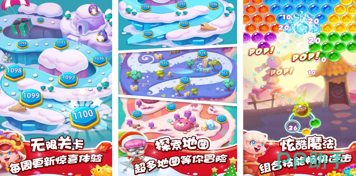 本作采用弹射式物理消除机制,玩家操控精灵角色发射彩色泡泡,利用墙面反弹原理调整落点,精准命中悬浮球阵中的关键节点。消除触发连锁坠落效果,深层目标被暴露后可引发大面积清除。全游戏覆盖超千关卡,每关配置差异化球体布局与障碍结构,强调空间测算、角度预判与连击规划能力。