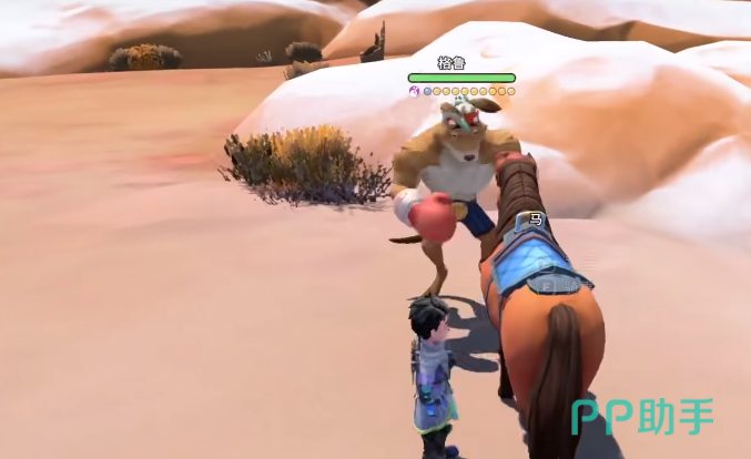 进入尤夫拉沙漠后,建议开启小地图功能,重点观察是否存在绿色圆点标记。该标记为动态指引点,会随玩家移动实时更新方向,引导至格鲁当前所在方位。抵达目标区域后,通常可直接与其对话并触发最终战斗。此前两战已充分暴露其攻击模式:格鲁习惯以高跳跃动作发起突袭,起跳前存在明显抬腿前摇动作;落地瞬间存在约0.8秒僵直期,此为最佳反击窗口。推荐采用侧向横移或后撤步保持安全距离,避免被地形限制走位空间——沙漠开阔地势利于持续周旋,只要不陷入沙丘夹角等封闭区域,即可大幅降低受击概率。