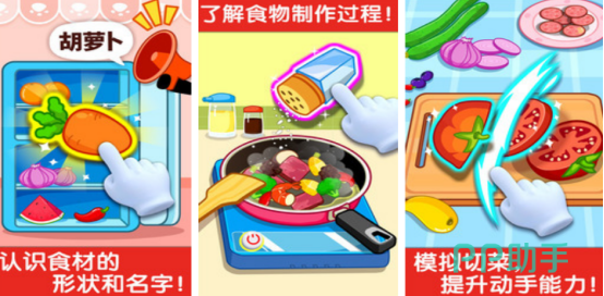 采用模拟经营玩法,围绕厨房劳动展开认知启蒙。游戏中涵盖中式炒菜、西式烘焙、饮品调制等多元主题场景,每类场景对应真实厨具名称、食材特性与基础烹饪步骤。孩子通过拖动、点击完成切配、翻炒、装盘等动作,逐步掌握物品功能与空间关系,通关后可解锁星星贴纸奖励。