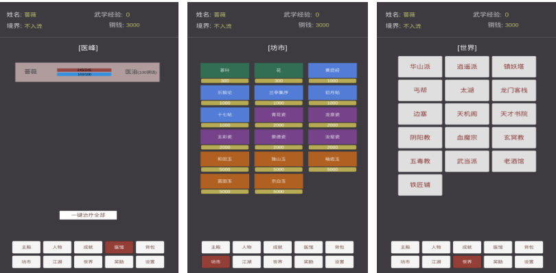 以古典武侠为根基,构建出涵盖中原、塞外、东海、苗疆四大区域的开放文字地图。玩家从初入江湖的无名少年起步,通过对话抉择习得不同流派武学——少林易筋经、武当太极剑、唐门暗器谱等均按真实武学逻辑设计成长曲线。内功心法可叠加修炼,招式组合触发连携效果,所有战斗结果均由文字实时演算生成,无固定数值面板,强调策略预判与情境判断。