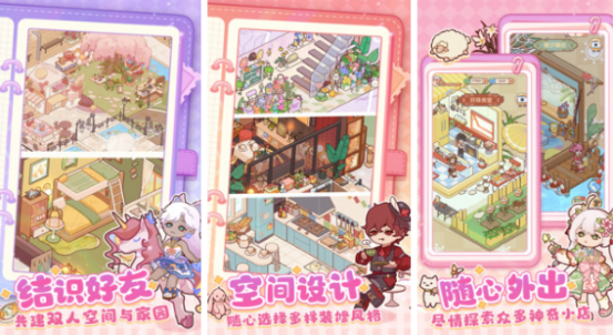 以佛系居家生活为叙事主线,主打治愈向慢节奏玩法。玩家可自由布置室内与户外空间,切换北欧、复古等主题风格;角色与宠物支持多维互动,包括服饰同步搭配,实现亲子装式个性化表达。初始为单机体验,现已升级为双人联机模式,支持协作建造专属双人家园。