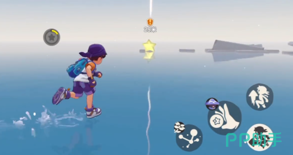 我们将视角后转,就能看到河岸尽头处的巨大星星,跑动向前靠近后点击查看,就能直接获取到星星魔法,并且还会开启一个教学教程,学习完毕后大家没有办法立刻离开这一场所,此时向着指引方向去走,会有一个气势汹汹的巨大星星拦截住大家。