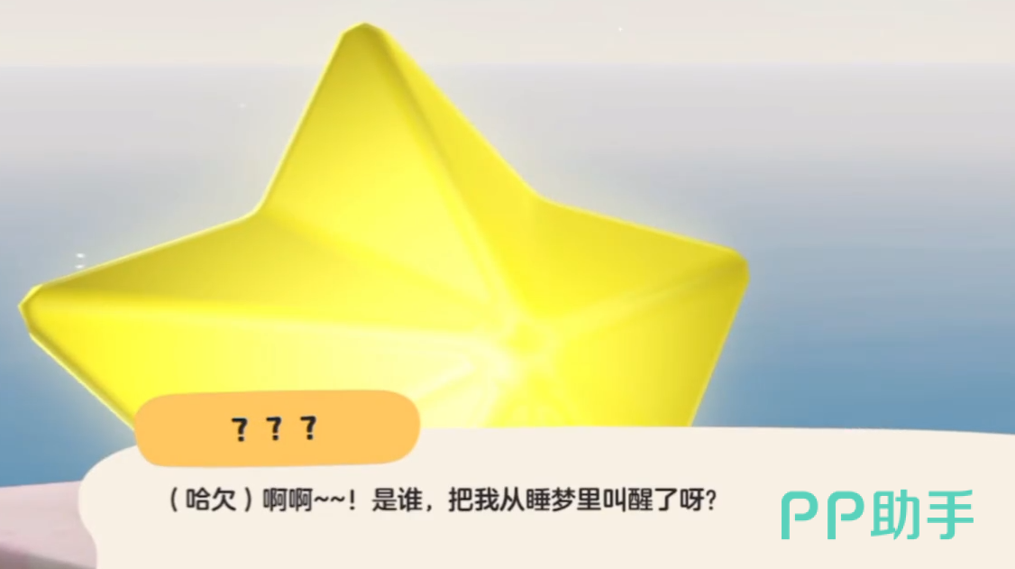 接近后点击触摸的选项,此时黄色星星就会和大家进行对话,这一期间的对话选项大家可以随意选择,完成后星星就会表示要送给我们一个小礼物,点击谢谢你后,任务就会出现下一步的提示,接近巨大的星星。