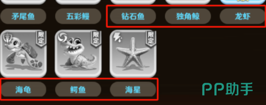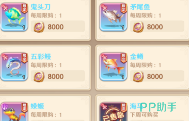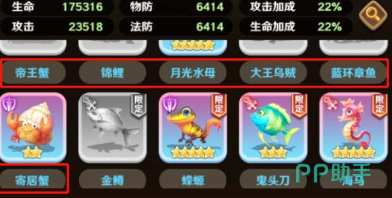 然后天胜商店里兑换的稀有限定鱼优先级一般是蝾螈5星、海马3星、鬼头3星,按照这个顺序培养了之后再将海马和鬼头培养到5星,中后期再按照海龟、龙虾、鳄鱼、海星的顺序都陆续升到5星。