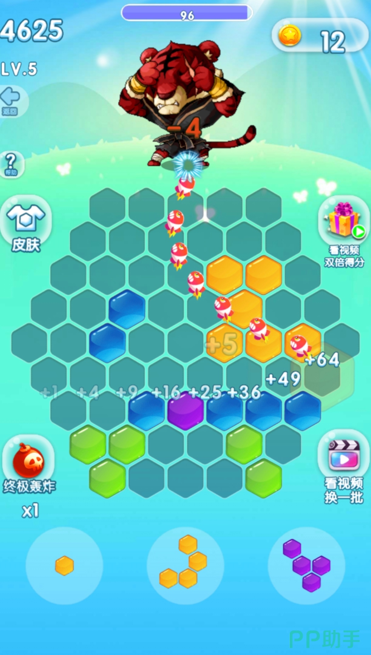 本作采用六边形网格布局,玩家需将同色方块进行邻接拼合,达成一定规模后触发爆炸式消除,并对画面中的怪兽造成伤害。消除面积越大,单次输出越高。游戏内置提示功能与特殊道具(如范围炸裂、颜色重置等),帮助应对高难度局面。整体强调观察力、预判能力和短时决策效率。