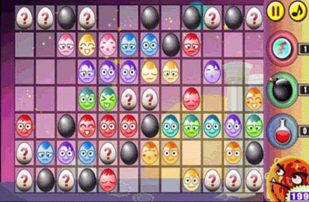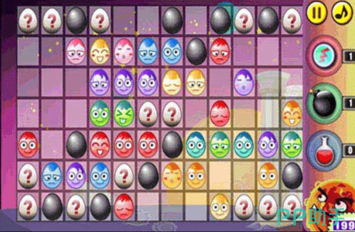 该游戏融合物理弹射与色彩匹配机制,玩家可自由调节发射角度,将彩蛋状泡泡精准投送至目标位置。相同颜色碰撞后自动消除,并伴随粒子特效与积分反馈。随着关卡推进,地图结构愈发复杂,障碍物增多,容错率降低;当顶部区域被完全填满即判定失败。节奏紧凑,兼具操作感与解压效果。