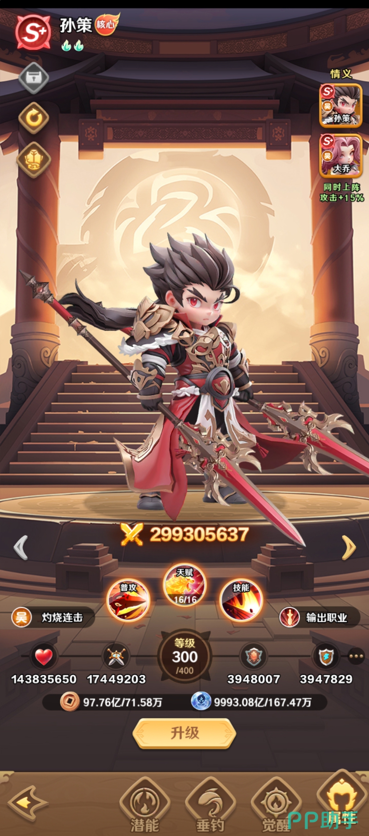 灼烧效果本身不直接造成高额伤害,但与孙策天赋深度绑定:激活九阶天赋后,每层灼烧可稳定提升暴击率;且多层灼烧叠加时,暴击增益呈线性叠加。因此,孙策并非单纯依赖单次爆发,而是通过持续施加灼烧层数,逐步构建“越打越强”的输出曲线。这也决定了其培养路径必须围绕灼烧覆盖率展开——包括技能升级、天赋点分配及装备词条侧重。