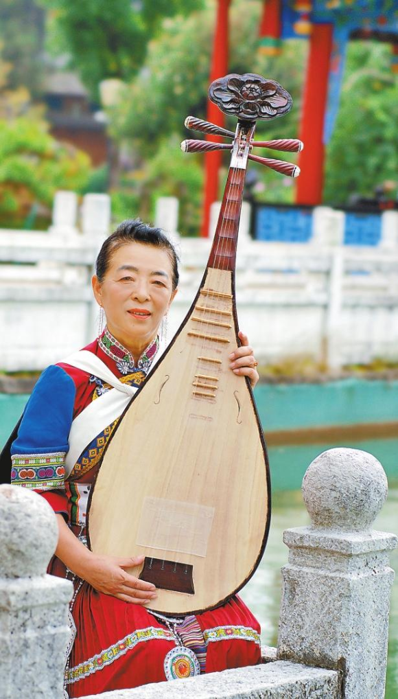40余年来,每次演出结束后,周秋鸿都会细心擦拭相伴多年的琵琶。现在,她还会和小孙女合唱《浪淘沙》《山坡羊》等曲子,一老一少的声音交织中,纳西古乐的音乐长河正以更丰沛的姿态奔向未来。