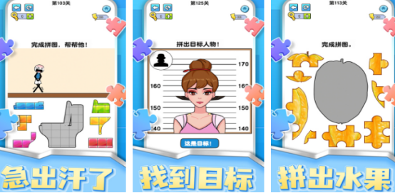 强调空间推理与策略规划能力训练,关卡按难度线性递进,包含写实风、插画风、几何抽象等多种视觉类型。基础模式支持常规拖拽,高级模式引入强制旋转机制,要求玩家预判角度与拼合路径,有效提升逻辑思维强度与专注力维持时长。