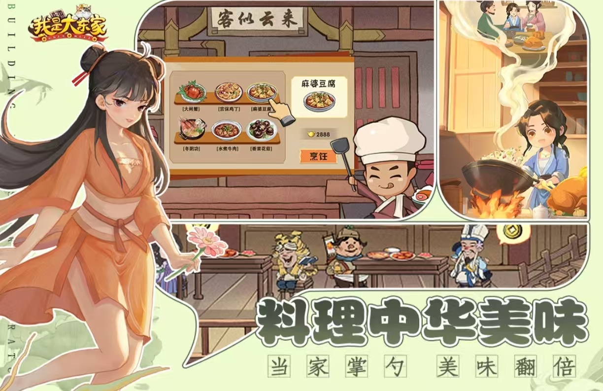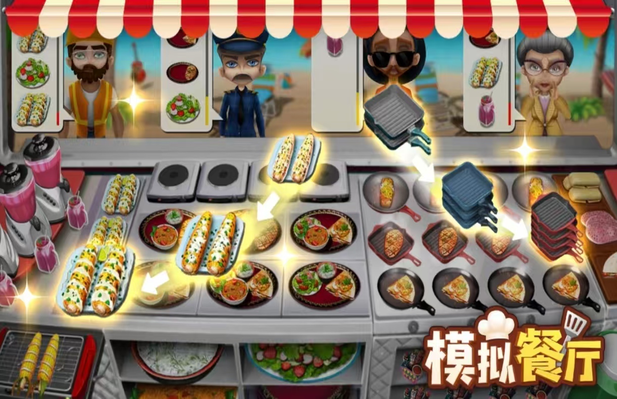 采用开放式菜系架构,覆盖中餐、西餐、日料、甜点四大模块,每类下设数十道可研习菜品。玩家通过金币解锁高级厨具(如商用烤箱、真空低温机)、扩展后厨操作台数量,并逐步开放包间、户外用餐区等空间形态。雇员系统支持按技能树配置厨师专精方向(烘焙/热炒/冷盘),服务员可训练响应速度与满意度加成。创意料理模式允许自由组合基础食材生成新菜品,经顾客试吃反馈后决定是否加入常驻菜单。
