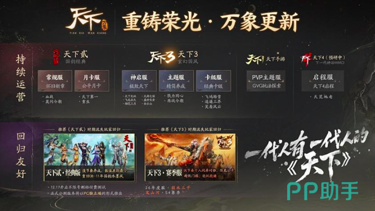 关于“《天下:万象》是否为赛季制”这一问题,本文已结合双版本机制进行解析。如需进一步了解游戏设定、预约进展或版本更新动态,可持续关注官方渠道获取权威信息。