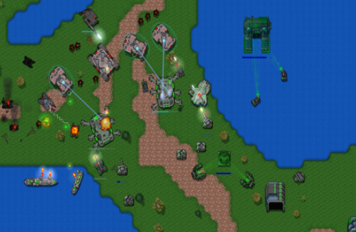 采用复古像素美术风格,但模型精度与场景层次远超同类作品。山体轮廓、水域反光、植被分布及昼夜光影变化均经过精细调校。玩家从零开始建设主基地、兵营、工厂与雷达站,逐步组建机械化步兵、自行火炮与无人机部队。战术层面需活用斜坡视野优势、湖泊天然屏障及森林隐蔽路径,在有限屏幕空间内完成多线作战部署与快速兵力投送。