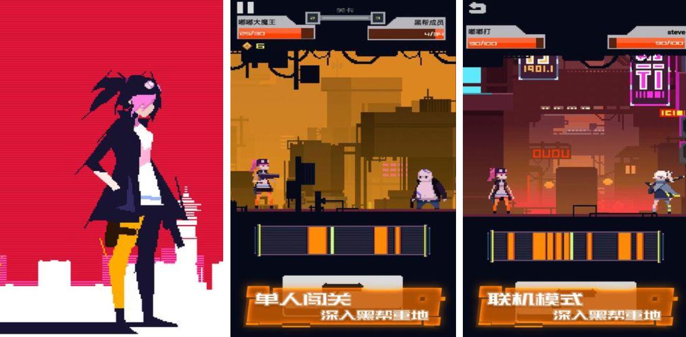 本作开创性地将赛博朋克美学与经典西部叙事相嫁接,采用复古像素画风呈现未来感西部世界。玩家操控义体强化的牛仔角色,在霓虹灯管闪烁的机械小镇中展开实时格斗。支持单人剧情闯关与多人在线PVP模式,技能释放强调时机判断与弹道预判。建筑细节如全息广告牌、生锈管道与老式电报机并存,构建出极具辨识度的混搭世界观。