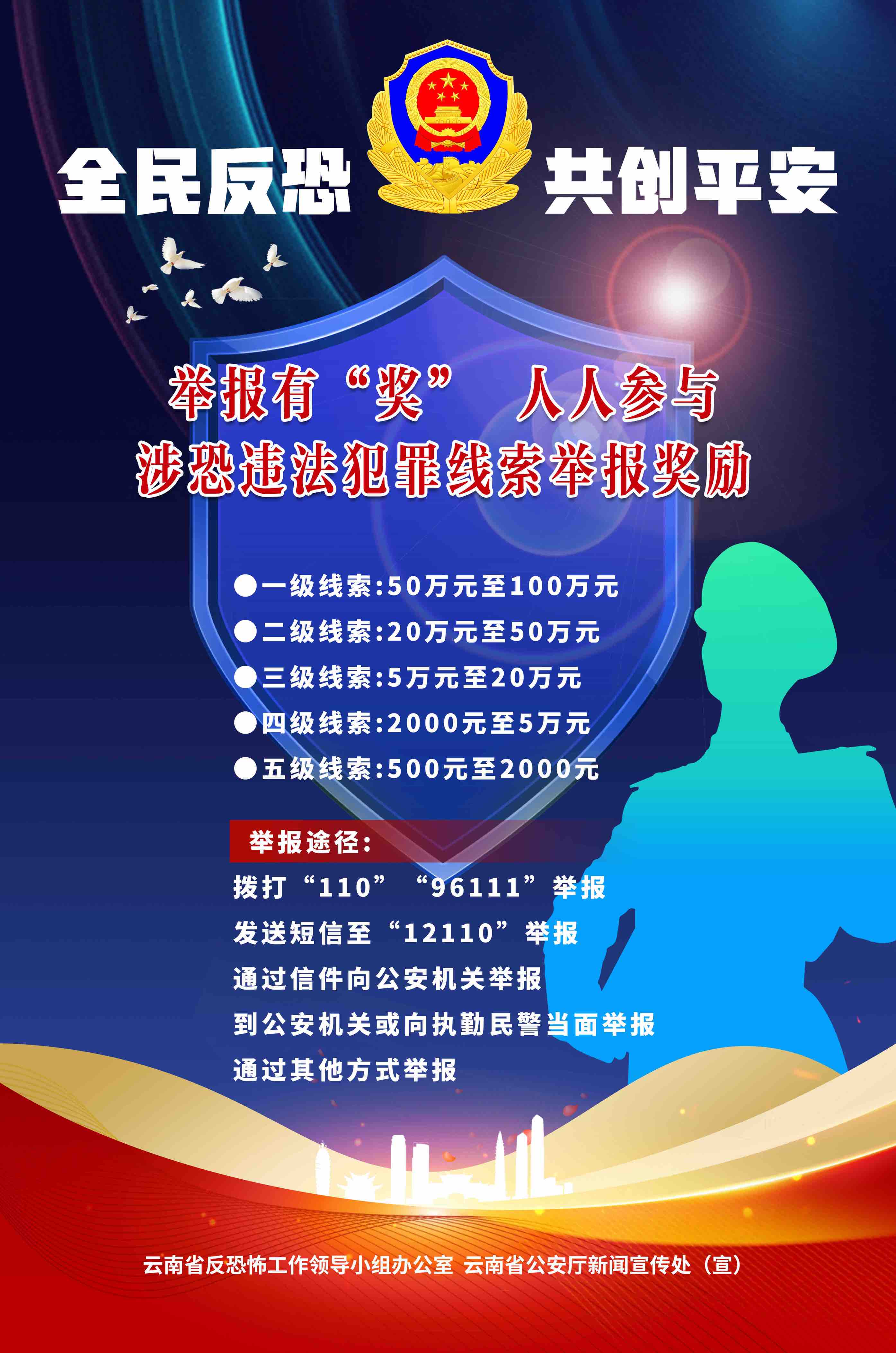 云南网讯(记者 赵岗)11月3日,云南省公安厅召开新闻发布会,发布全省公安机关贯彻落实《云南省实施〈中华人民共和国反恐怖主义法〉办法》情况。其中,昆明今年已累计发放涉恐违法犯罪线索举报奖励12.6万元。
