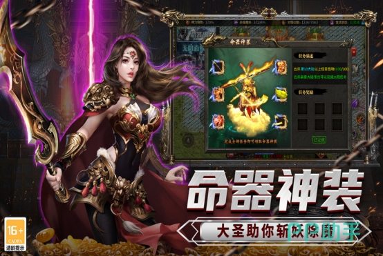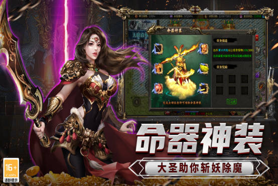 采用单职业设定,聚焦装备驱动型成长路径。装备分阶明确(白→绿→蓝→紫→橙→红),每阶含强化、镶嵌、洗练三重成长维度;神兽系统提供固定属性加成与被动特效,与装备词条形成数值叠加。活动设计侧重随机性与爆发收益,如天降财宝掉落全服公告级稀有道具,异界魔兽挑战需集结队伍限时击杀,通关奖励含限定材料与稀有神兽碎片。