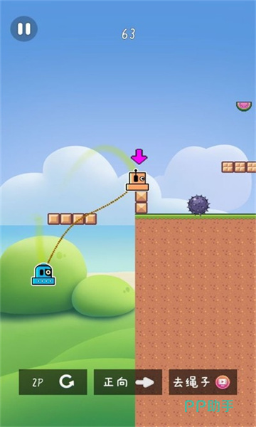 本作以“物理绳索绑定”为关键设定,强制两名玩家共享同一根虚拟绳索,在动态变化的立体关卡中完成同步起跳、精准落点与协同避障。场景设计融合大量程序化生成障碍与突发性事件,如骤然塌陷的平台、横向移动的浮桥、周期性翻转的机关等,对操作一致性提出极高要求。每一次成功通关,都建立在毫秒级节奏同步与预判协作的基础之上。