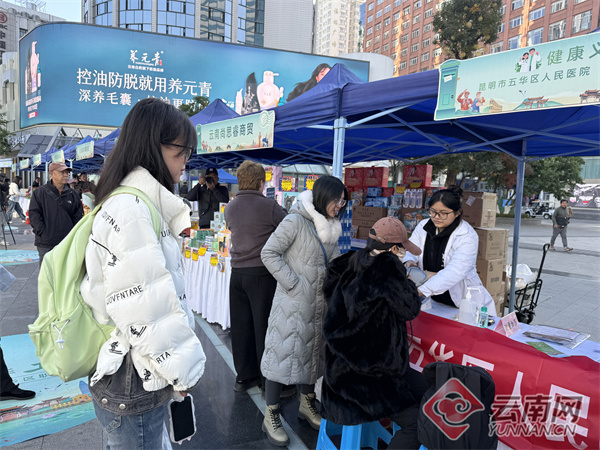 活动以满足职工实际需求为导向,依托五华区特色文化和南屏商圈资源,设置健康义诊、展销商家、游戏互动等特色区域。现场联合五华区人民医院、昆明眼科医院、云南白药智云中医门诊部等单位,为职工提供中医调理、视力检测、口腔检查等服务,广受欢迎。互动游戏区开设“工会知识角”,职工凭昆明职工小程序电子会员证领取“五华乐惠明信片”,完成学习打卡并盖章后可参与抽奖,在轻松氛围中进一步了解工会服务。