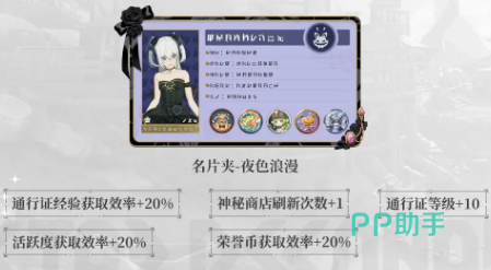 还有就是这期通行证中的新皮肤,皮肤的话每一期通行证更新都是会跟着更新的,这一期的皮肤名为夜色浪漫,其中女号的皮肤为洛丽塔裙装,男号的皮肤为英伦风燕尾服,服装整体呈现黑色就质量来看也是不错的,最后在这期通行证中海会给到新的商店刷新次数和各种加成,这就是本期通行证的大致情况了。