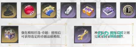 谈起这一期的通行证,准备期通行证中奖励进行了更新除了一些常规的材料奖励外,还多出了以下奖励其中第一个是强化模组,这模组不是普通模组而是卓越品质的模组,使用后可以选择指定的卓越品质模组材料。