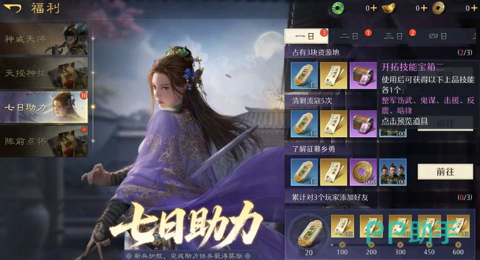 相较于其他slg,九牧之野对平民是比较友好的,首充任意金额就会给到超强的增伤奶辅大乔。登录有送孙策、蔡文姬、张飞,然后7日活动累计有送200抽,并且前200抽不会出重复的橙卡。