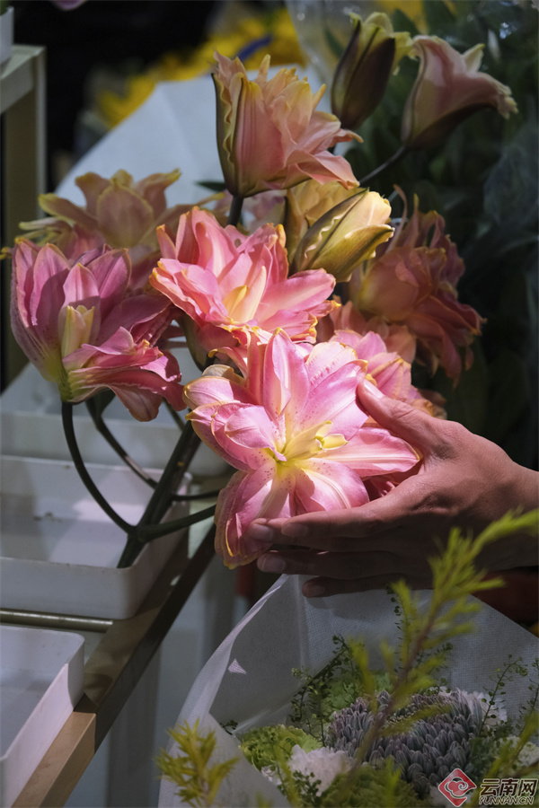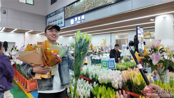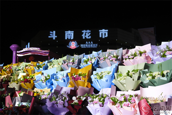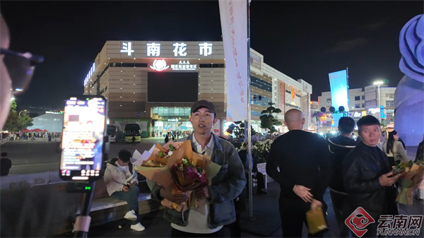 随后开展的“主播游客互动派发鲜花”将气氛推向高潮,500份特色鲜花通过趣味问答及小游戏的形式赠予现场游客,引得欢声不断。夜幕之下,主播们深入花市,带领镜头前的观众“云”逛斗南,实时展示各类花卉的品种、价格与购买流程,实现“线下打卡、线上下单”的消费闭环,充分激活“花卉+文旅+电商”三重活力。