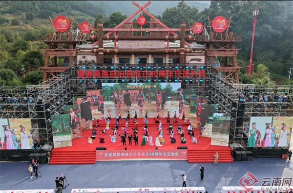 云南网讯(记者 彭锡)11月1日,云南省大理白族自治州漾濞彝族自治县举办成立40周年庆祝大会,全县各族干部群众身着节日盛装欢聚,以载歌载舞的形式共庆这一重要时刻。