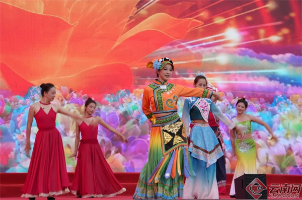 庆祝活动以原创舞蹈《你好 漾濞》开篇,随后《核桃的故乡》《来漾濞莫想家》等歌曲联唱、说唱街舞《漾濞速度》,以及《西坡天籁》《阿哥我的嘎嘎》等民族风情歌舞接连上演,演员身着绣有彝、白族传统纹样的服饰,手持民族乐器起舞,展现各民族文化交融共生,赢得阵阵掌声。整场演出在全场大合唱《歌唱祖国》中圆满落幕。