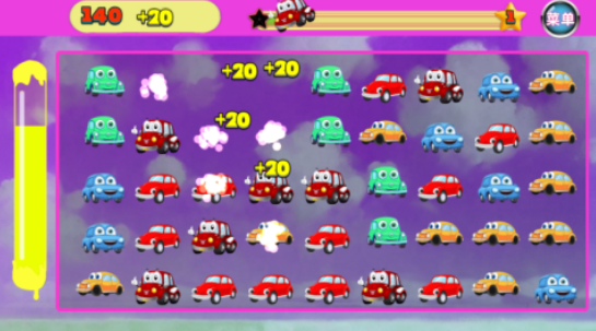 采用方向联动式消除机制,画面中随机分布多种色彩鲜明的赛车模型。玩家需沿同一方向滑动连接至少三个同款车辆完成消除,消除数量越多,单次得分加成越显著。核心挑战在于倒计时内最大化连消效率,冲击更高总分。