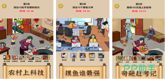 融合网络流行文化与非常规解谜逻辑,关卡设计打破常规认知框架。每关呈现一幅含多处矛盾或违和元素的场景图,例如物理异常、时间错位、人物行为反逻辑等,要求玩家在倒计时内找出全部12处不合理细节,强调发散思维与信息捕捉能力。