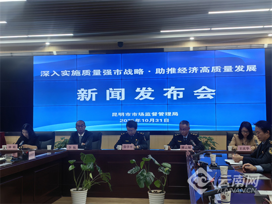 10月31日,昆明市召开“深入实施质量强市战略 助推经济高质量发展”新闻发布会。昆明市市场监督管理局发布了“十四五”以来,昆明市质量强市建设的工作成效,市工业和信息化局、市住房城乡建设局、市卫生健康委等部门介绍了各领域质量工作的开展情况。