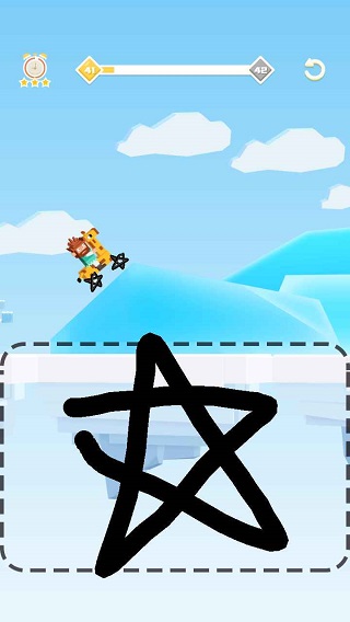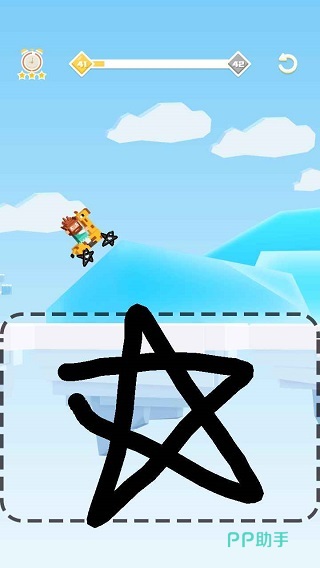 《涂鸦老司机》将汽车主题关卡与手绘式解谜深度融合。玩家需根据立体积木构成的障碍地形(如斜坡、断桥、旋转门等),即时绘制适配形态的车轮——例如三角轮应对锯齿路、弹簧轮缓冲高落差、齿轮轮匹配传动机关。每一关考验观察力、空间判断与即兴绘图能力,强调“画即所用”的交互逻辑。