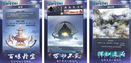 主打高自由度沙盒式修真体验,采用手绘质感古风立绘,角色建模涵盖百种以上体型、灵根、命格组合。世界事件系统按真实时间轴推进,云雾森林遇奇兽、藏经阁悟残卷、寒潭底寻异火等随机事件均具独立CD与成功率机制。玩家可自主规划百年修真生涯:或专注炼丹提升火候等级,或游历十洲三岛收集上古传承,亦可建立洞府收徒授业,完整呈现从练气期到渡劫期的人物成长曲线。