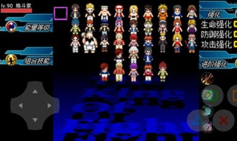 这是一款由资深拳皇玩家团队开发的像素风格格斗手游,采用16bit复古渲染引擎,角色造型融合Q版比例与经典剪影特征,如草薙京红发轮廓、八神庵紫焰披风等关键识别元素均得到保留。操作界面提供自定义按键布局,支持三档连招灵敏度调节;强化系统允许自由分配属性点至力量、速度、气力三项基础参数,衍生出多种流派构建路径。必杀技特效使用动态粒子+屏幕抖动+音效分层技术,视觉表现力突出但不干扰操作判断。