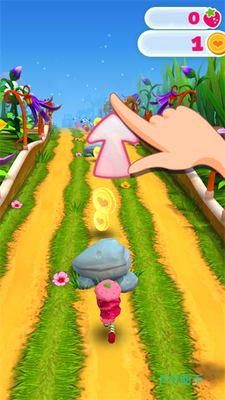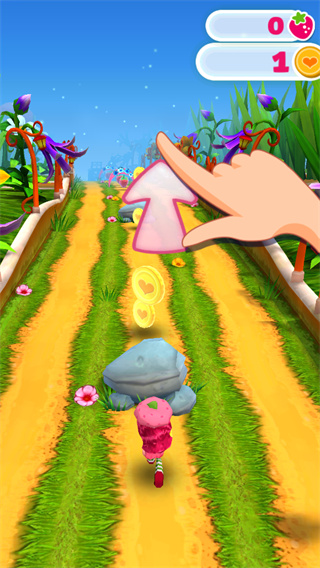 本作以高饱和度的粉彩色调构建视觉基调,角色设定、关卡布局与交互元素均围绕少女向审美展开。玩家操控身着蓬裙的草莓公主,在童话感十足的立体场景中持续奔跑,通过左右滑动控制花篮接取沿途散落的浆果与蘑菇,完成收集目标并规避障碍。全程无广告干扰,所有内容预置终端本地,启动即玩。