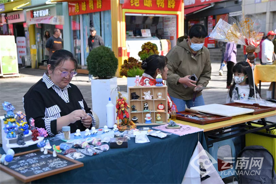 非物质文化遗产体验区同样人气十足。糖画、面塑等传统技艺展示台前围满了居民,大家在非物质文化遗产代表性传承人指导下制作工艺品,感受传统文化的魅力。