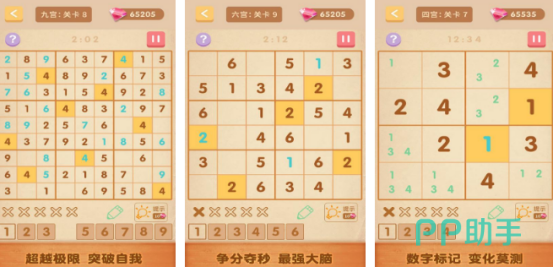 涵盖四宫格、六宫格、九宫格及十二宫格四大规格体系,由浅入深构建认知训练路径。低龄用户可从4×4基础布局起步,进阶用户可挑战12×12超大矩阵,所有题目均经算法验证确保唯一解。关卡难度曲线平滑递进,兼顾教学引导与自主探索,强化数字敏感度与模式识别能力。