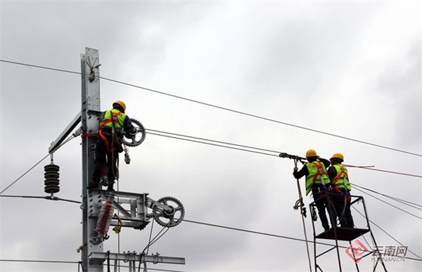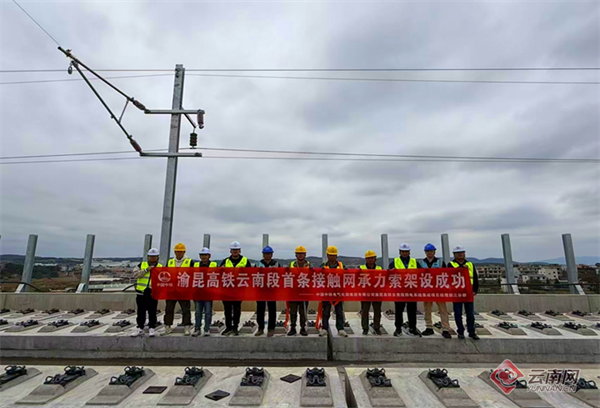 云南网讯(记者 彭锡 通讯员 石凯微 刘武林)10月27日,由中铁电气化局集团有限公司承建的渝昆高铁云南段四电工程取得关键突破——首条接触网承力索在八仙营跨环城路特大桥顺利架设完成。这一里程碑事件标志着渝昆高铁云南段四电工程正式进入挂网架线施工新阶段,为后续铁路电气化建设提速及全线高质量开通运营筑牢了坚实基础。