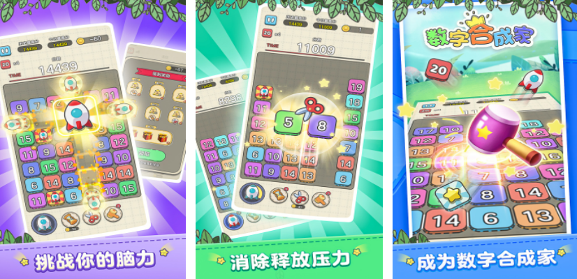 以清新简约美术风格呈现,聚焦数字合成逻辑。玩家通过横向滑动触发同值方块自动归并,每次成功合成即减少屏幕内数字总量,目标为清空全部格子。过程强调观察力与节奏把控,有助于提升儿童工作记忆容量与任务执行效率。