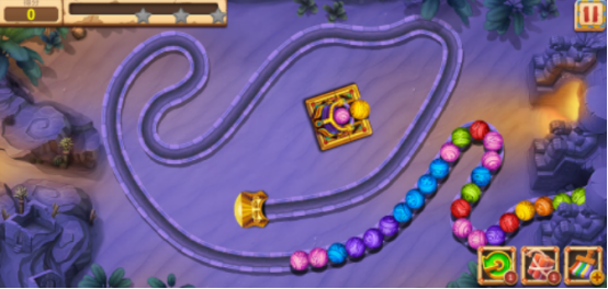 基于祖玛核心玩法重构,球列从固定轨道入口持续涌出,玩家操控中央炮台发射同色球进行配对消除。消除规则为三连及以上同色球自动崩解,连锁反应可触发额外得分加成。每关设定明确目标:如清除指定数量球、阻止球列抵达终点、达成分数阈值等,共包含100+递进式关卡。