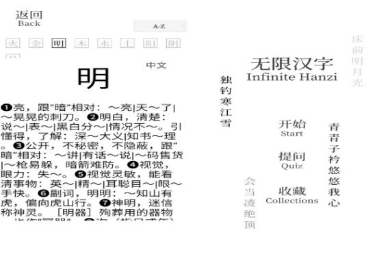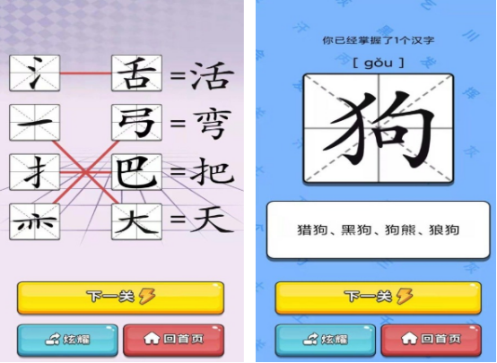 采用汉字合成机制,玩家通过组合两个基础部件生成新字,如“木+目=相”“氵+可=河”。系统自动收录已解锁汉字,并提供完整词典式展示:含标准读音、常用词语、简明释义及典型用法示例。图鉴系统支持按部首、笔画数、使用频次等维度检索,助力构建系统化汉字知识网络。