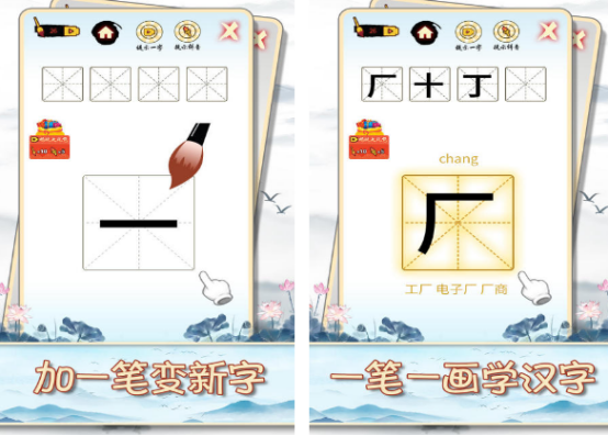 主打汉字形变推理玩法,设置百余关卡,围绕“加一笔”“减一笔”“换部件”等经典字形变化规则展开。例如“口”加一横变“日”,“大”加一点变“太”。题目设计注重思维严谨性与观察细致度,既锻炼逻辑推演能力,又深化对汉字部件功能的理解,适用于巩固已学字库并拓展字际联系。