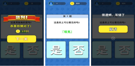 采用极简题干+双选判断机制,如题面“这是街上可以看见的吗”,选项为“是”与“否”,配图或文字提示(例如“坦克”)考验常识辨析能力。题目随机性强,无重复组合,侧重逻辑推断与现实认知匹配度。答对即得金币奖励,激励持续挑战,适合碎片时间快速练习。