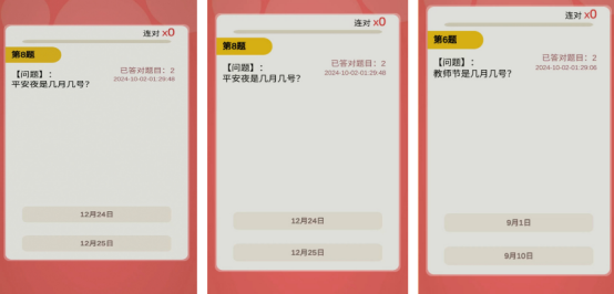 视觉风格清新柔和,角色设定亲和力强,降低用户心理压力。关卡设计兼顾普适性与进阶性,含普通模式与倒计时挑战两种玩法。限时模式下,界面实时显示已答对题数、剩余时间及双选项布局,强化专注力与反应速度训练,适用于各年龄段知识复习与脑力激活。