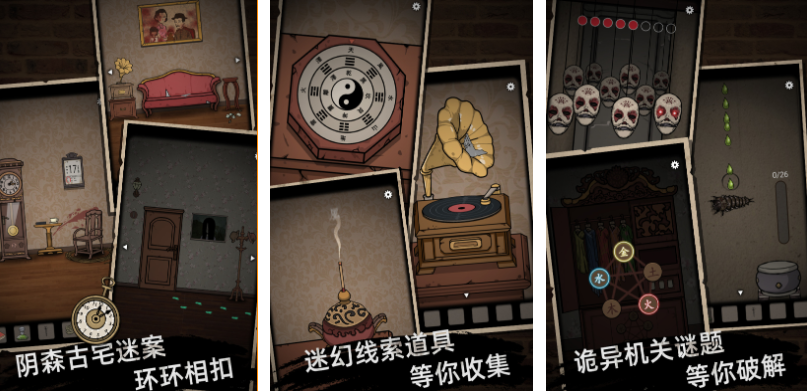 以皖南徽派古建为蓝本构建封闭式恐怖空间,马头墙阴影、天井漏光、雕花窗棂均参与环境叙事。谜题链采用“因果嵌套”结构——前序解谜结果直接改变后续场景物理状态。手绘风格UI与实地采录的虫鸣、瓦砾坠落声交织,营造出潮湿阴冷的生理不适感,被玩家称为“最接近现实老宅体验的解谜游戏”。