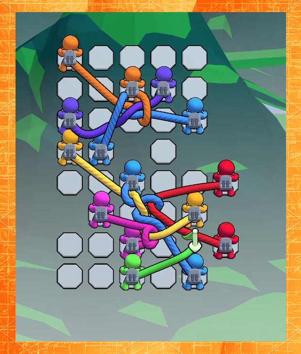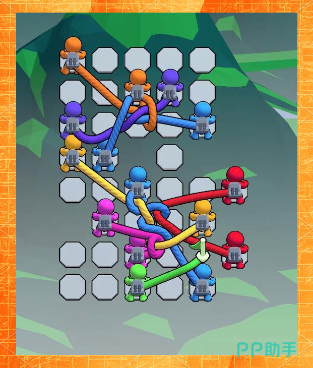 这是一款以物理逻辑与空间构型为驱动的硬核解谜作品。玩家需通过精准控制绳索的缠绕路径、锚点连接顺序与张力方向,解开层层嵌套的机关结构。前期关卡侧重基础规则引导,中后期则引入动态障碍、时间限制与多线程同步操作,对观察力、预判力和手眼协调提出严苛要求。界面采用极简美学风格,低饱和配色与清晰线条有效降低视觉干扰,专注提升解题沉浸度。