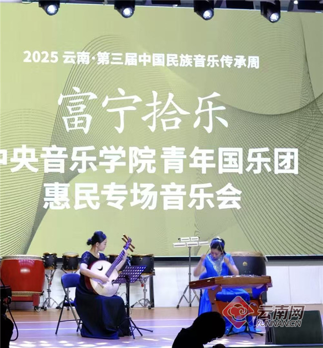 10月25日晚,文山壮族苗族自治州富宁县委会堂座无虚席,中央音乐学院青年国乐团“富宁拾乐”惠民音乐会作为2025云南·第三届中国民族音乐传承周的重要惠民活动,在《黄河之天上来》的唢呐齐鸣中拉开帷幕。