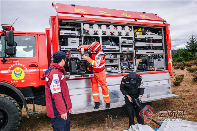 本次活动的核心环节为高海拔山地遇险救援应急演习,由中法专家联合精心设计,模拟23人登山队在高山雪域失联并出现高原脑水肿、严重低温症等多重急危重症的复杂险情,涵盖灾难现场搜救、伤情评估、院前分诊转运等全流程。迪庆州120指挥中心、州人民医院救援组、消防支队、蓝天救援队等多单位协同参与。
